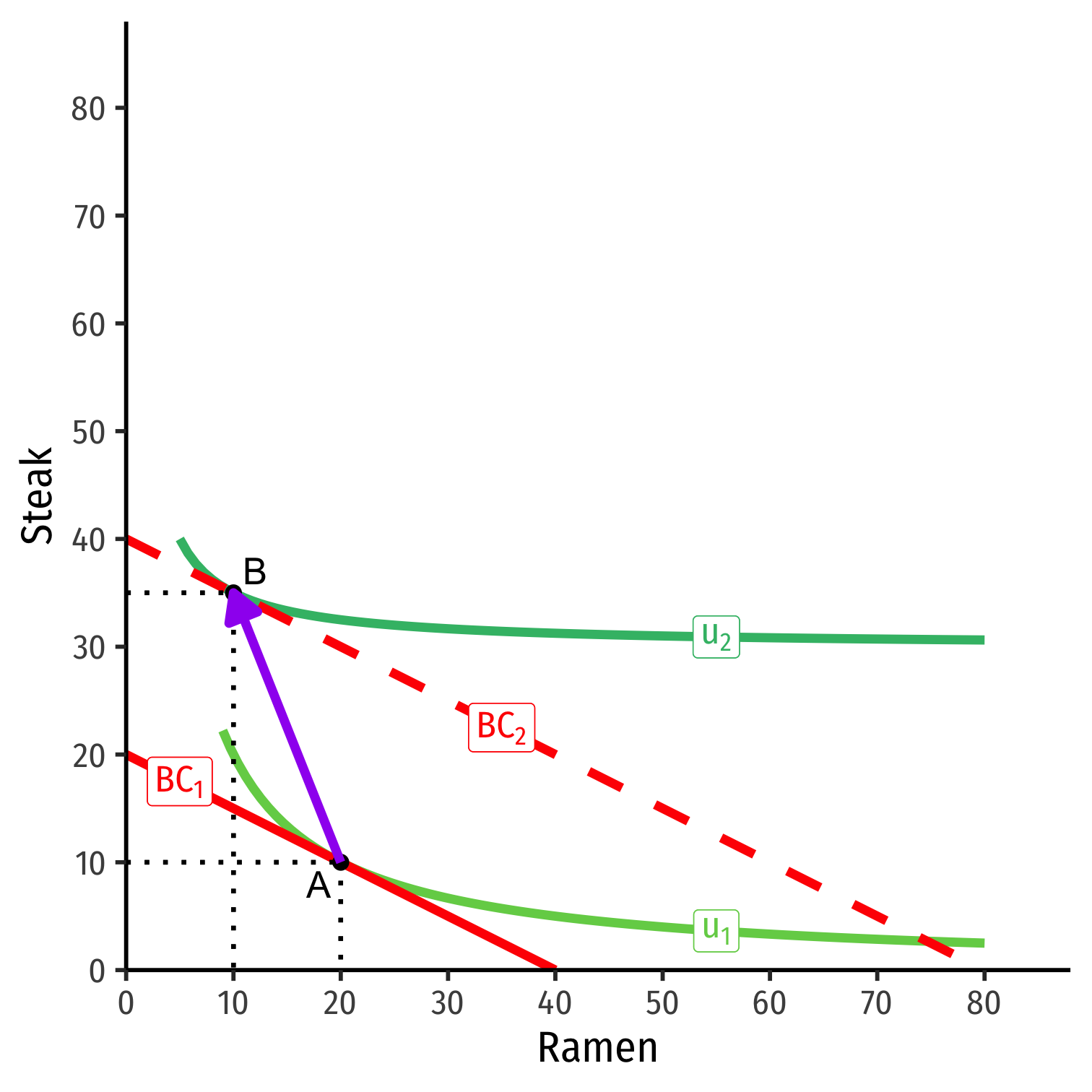 Steak is a normal good, ramen is an inferior good