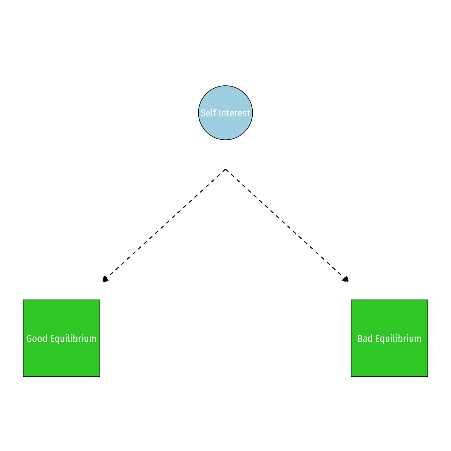 The Incentives Problem: How to structure incentives that individuals face in a way that maximizes cooperative behavior (voluntary exchange and association) and minimizes non-cooperative behavior (cheating, opportunism, exploitation, violence, rent-seeking)