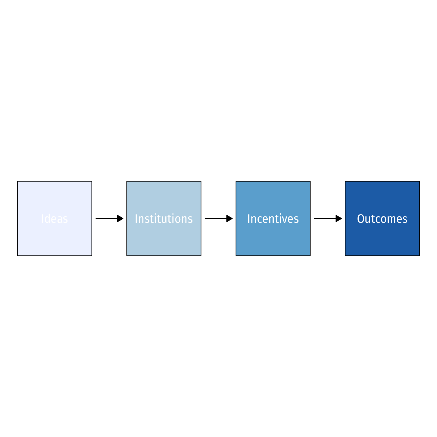 Assumes existence of "good" economic & political institutions that facilitate market exchange
