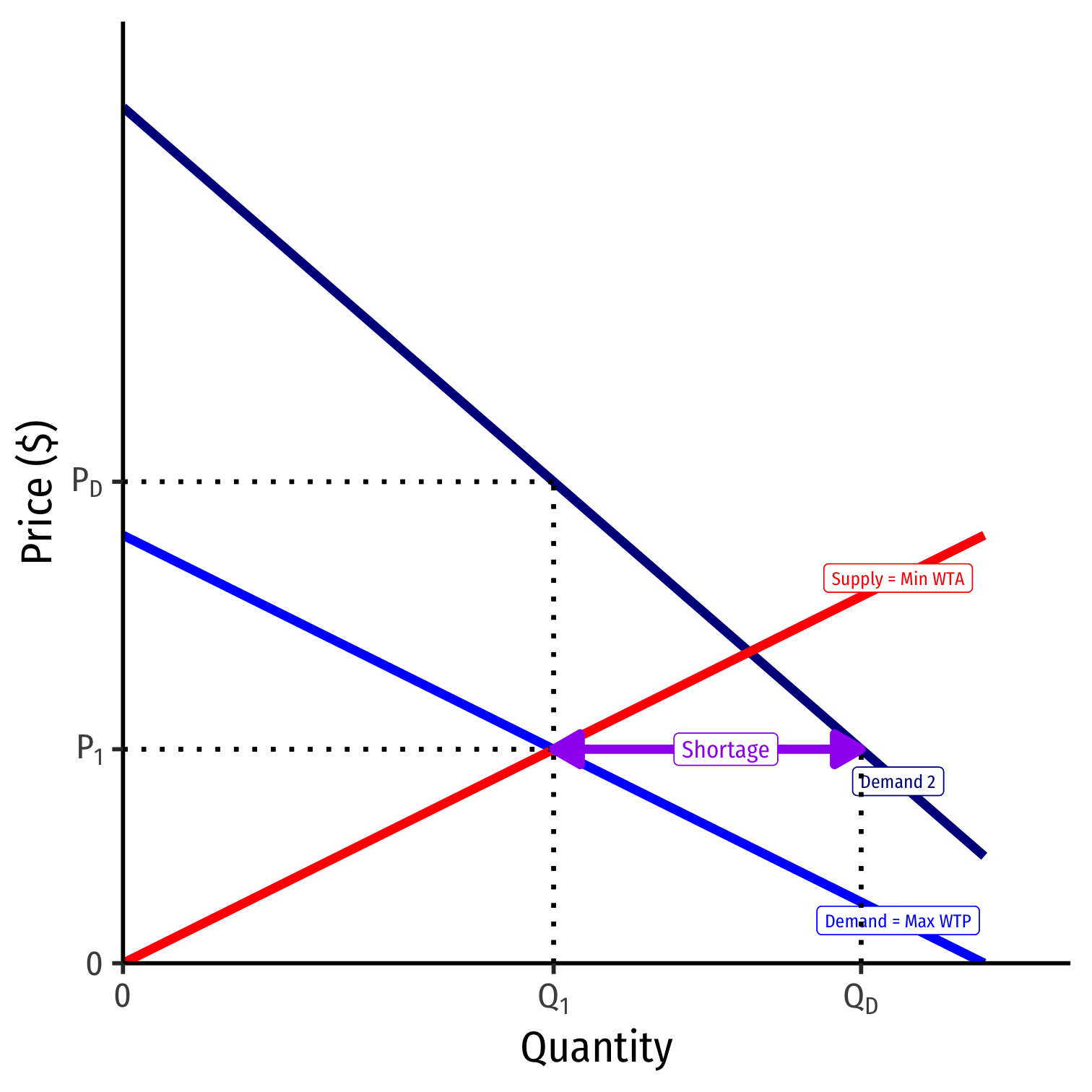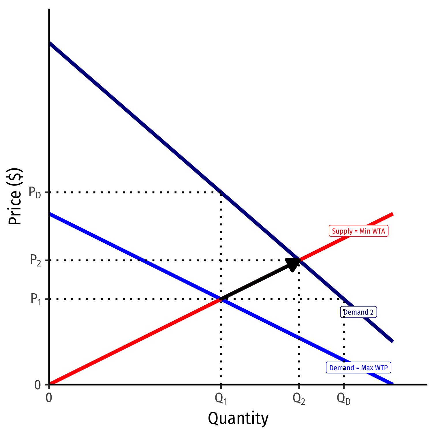 Sellers would respond to rising willingness to pay, and produce and sell more